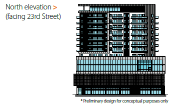 14-storey, 100-unit mixed-use hub providing housing and community services.