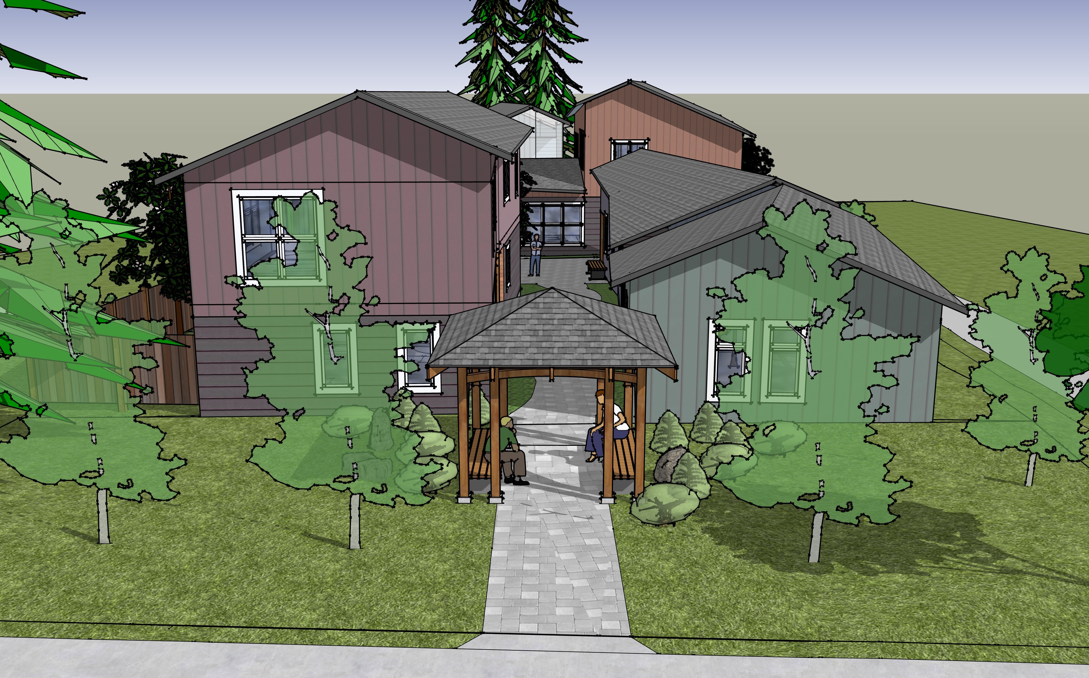 10-unit non-market stacked townhouses for modest income singles and families.